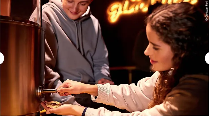 在巧克力博物馆的品鉴会上,您的味蕾将臣服于一种独特的黑色诱惑:巧克力。在90分钟的导览中,您将深入了解可可的种植、品种、采收以及制作成巧克力的过程。导览的重头戏在巧克力工厂,您可以根据自己的愿望制作一块专属的巧克力。您是不是总想尝尝裹着辣椒片巧克力的小熊软糖呢?在这里完全可以实现!当然,在游览的各个站点,都有各色各式的巧克力供您品尝。Hmm,好吃!