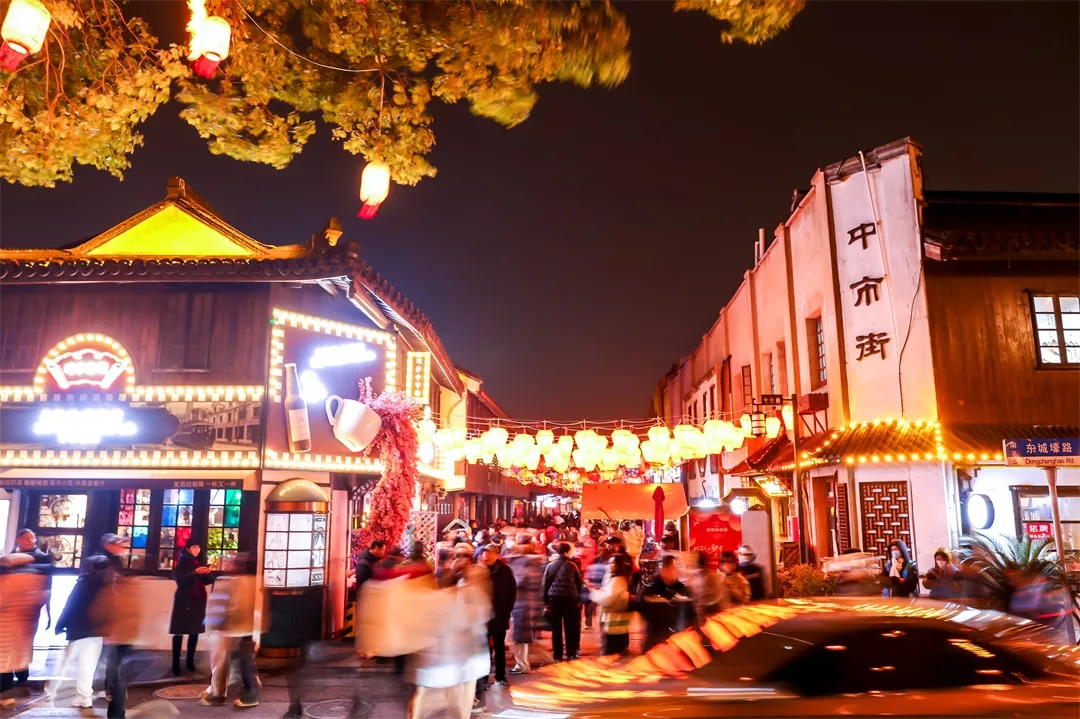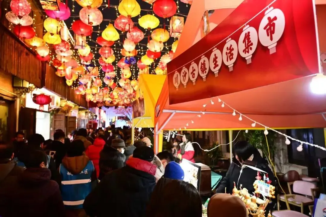 作为上海唯一保留完整城池格局的国家AAA级旅游景区,川沙古镇以明代城墙、护城河与内史第(黄炎培故居)为核心,承载着“浦东之根”的深厚文脉。冬日至此,可漫步护城河步道,看斜阳映照青砖黛瓦,亦可换装体验民国风情街景,于老宅巷弄间定格时光背影。灯影启新岁,流彩闹元宵,春节期间,古镇化身非遗舞台,主题灯会璀璨登场,龙狮巡游、鱼灯舞动,婚嫁队伍红衣喜庆,江南丝竹声里尽显传统节庆的鲜活张力。