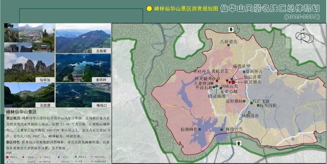 峰林仙华山景区,以“峰林毓秀、环视皆景”为特色,新建景区车道、扩大梅坞水库库容、改善旅游公路,完善游步道与导览设施,提供登山攀岩、避暑休闲、水主题研学等服务。