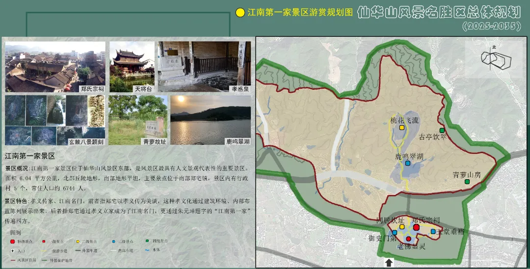 江南第一家景区,以“孝义传家、江南名门”为特色,保护郑义门古建筑群、挖掘文化内涵、改造周边环境,筹建研学配套设施,提供文化体验、访古、水上活动等服务。