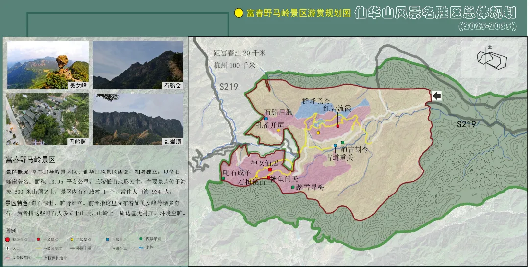 富春野马岭景区,以“奇石惊世、旷野雄立”为特色,优化红岩顶游步道,完善标志标识,升级马岭村民宿与旅游设施,提供摄影写生、探胜探险、避暑康养等服务。
