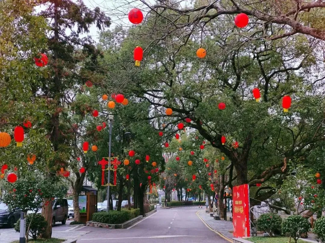 一路灯笼摇曳、花卉添彩