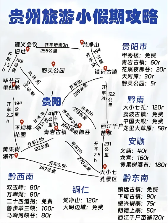 贵阳|烟火起点老话“贵阳地无三里平”,留半天解锁老城韵味!黔灵山公园(避坑:别喂猴子),漫步山间尽是“绿树村边合”的清幽;傍晚逛甲秀楼,华灯初上时,桥影映河,恰有“灯火楼台一水间”的雅致,免费出片。溜进青云路夜市,提前解锁黔味烟火。