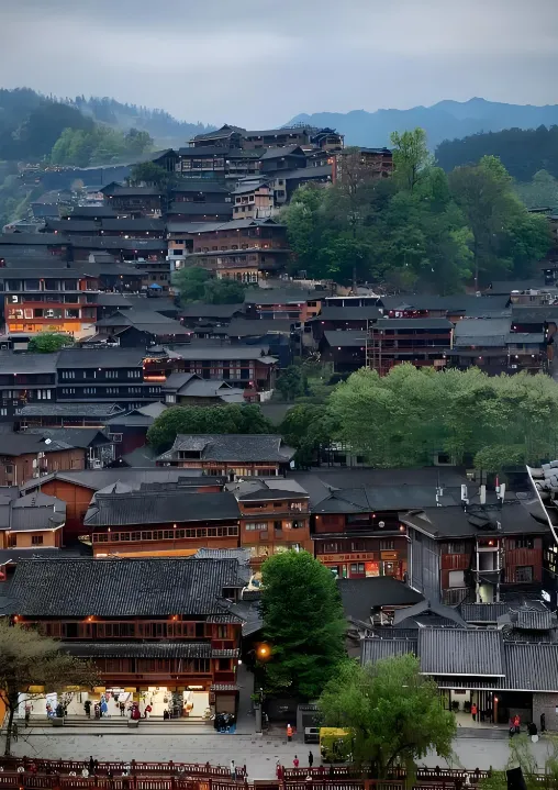 西江千户苗寨|夜色封神下午入园,租苗服避高价小店;梯田旁拍氛围感大片,傍晚登观景台,千户吊脚楼灯火璀璨,印证“灯火万家城四畔,星河一道水中央”的盛景。苗寨老话“寨有灯火,心有归处”,手机也能拍出星河落梯田的美感。