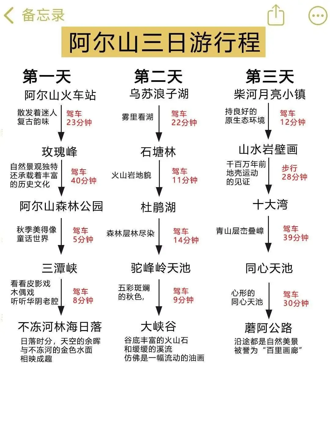 D1:阿.尔.山市 .→ 阿尔.山国家森林公园(.天池、.三潭.峡)