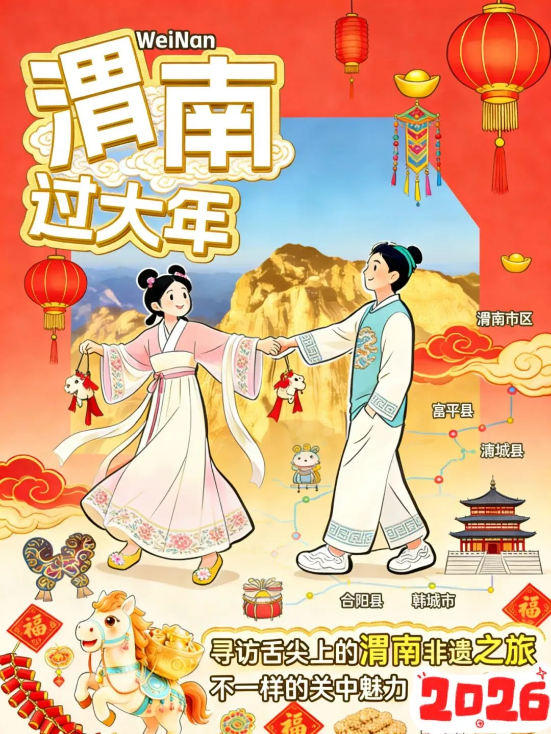 近日,据渭南市文化和旅游局消息:2026年“非遗贺新春·寻味中国年”主题推广暨非遗年货购物月活动近日在广州举办。活动现场发布40条全国非遗美食特色旅游线路,渭南市“‘寻味关中 食在渭南’——寻访舌尖上的渭南非遗之旅”成为陕西唯一入选线路。