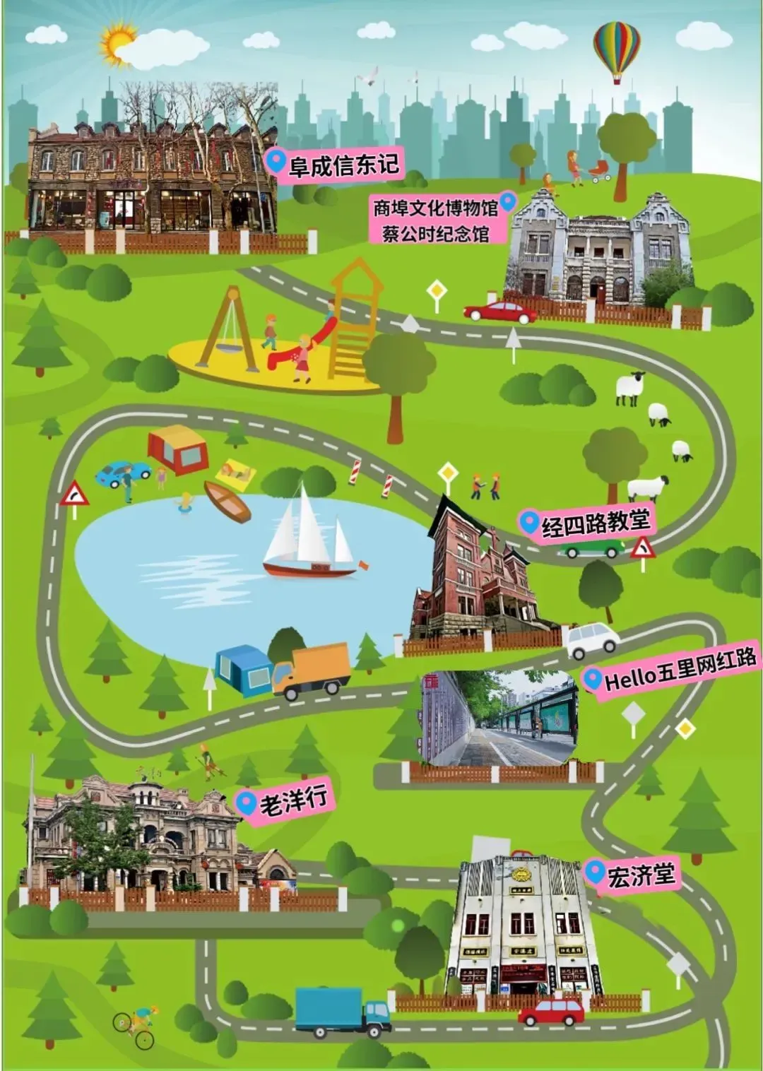 济南商埠文化博物馆→蔡公时纪念馆→经四路基督教堂→宏济堂中医药博物馆→老洋行民宿→Hello五里沟网红路→阜成信东记