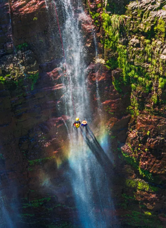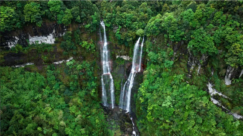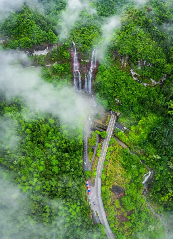泰顺红岩双瀑坐落于司前镇红岩隧道口、52省道旁。上游两条溪涧并行,从约60米高的红岩峭壁飞泻而下,丰水期双瀑下半段合二为一,水雾腾空、声震山谷;旱季则分作两缕白练,姿态温婉,是免费又极具观赏性的浙南自然景观。