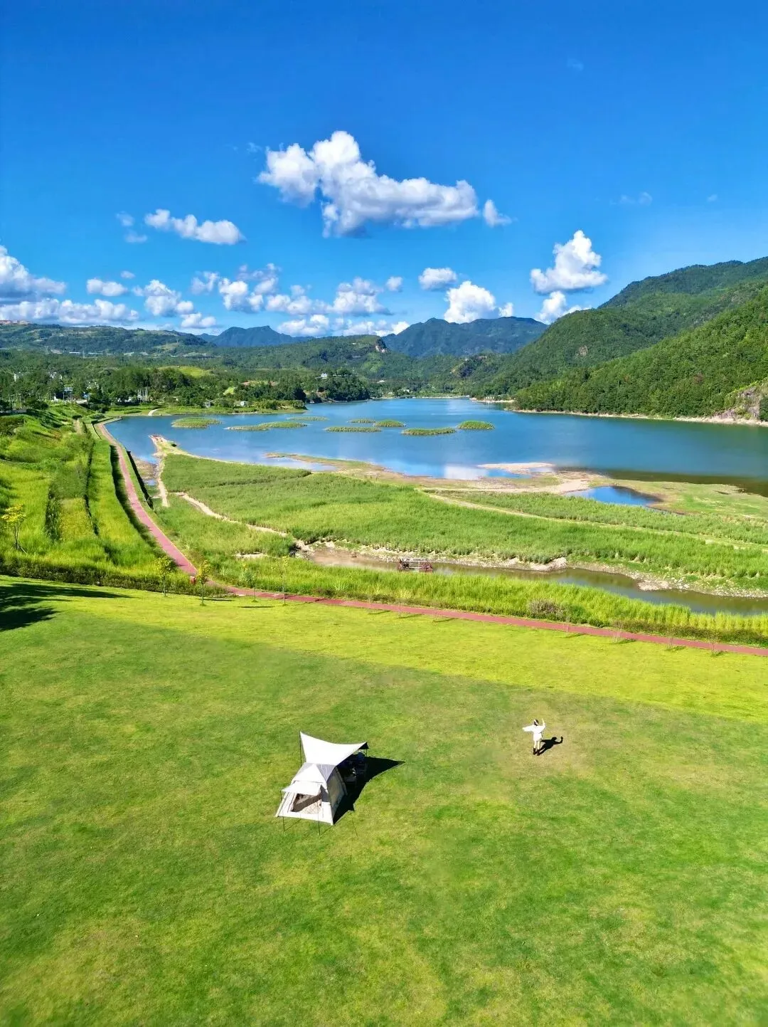 一半青山一半湖的万芳草坪,是放空心灵的绝佳去处。草坪旁的咖啡馆暖意融融,点一杯热咖啡,沐浴着冬日暖阳,看湖面波光粼粼,听风吹过草木的轻响,或是在草坪上放风筝,让时光慢下来,在静谧中感受生活的顺遂与惬意,同时这里也是状元历史文化研学的重要之地,是“学业顺达之旅”的绝佳打卡地。