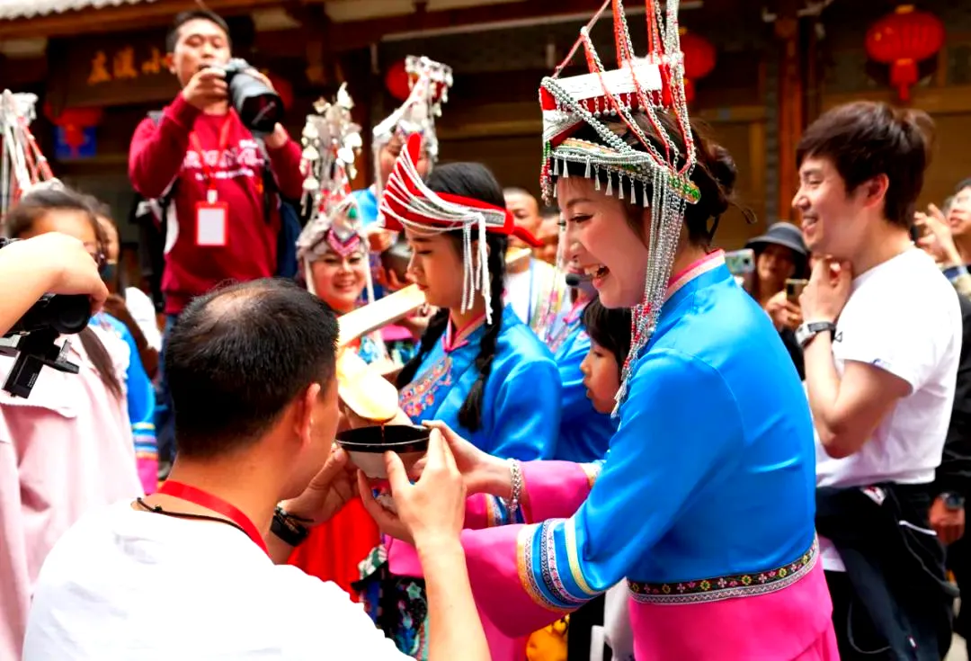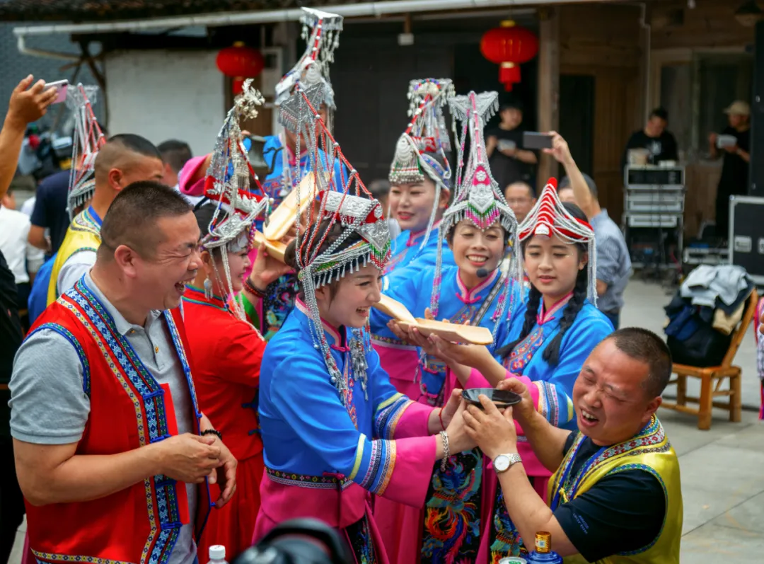 畲乡宴席的“头牌”非“凤凰醉”莫属。畲家姑娘手持长竹筒,以“高山流水”的独特方式敬酒,红曲酒顺着竹筒缓缓流入碗中,伴着清脆的歌声、爽朗的笑声,碰杯声汇成最热烈的祝福。饮下这杯“凤凰醉”,寓意马年财运亨通、福气满满。
