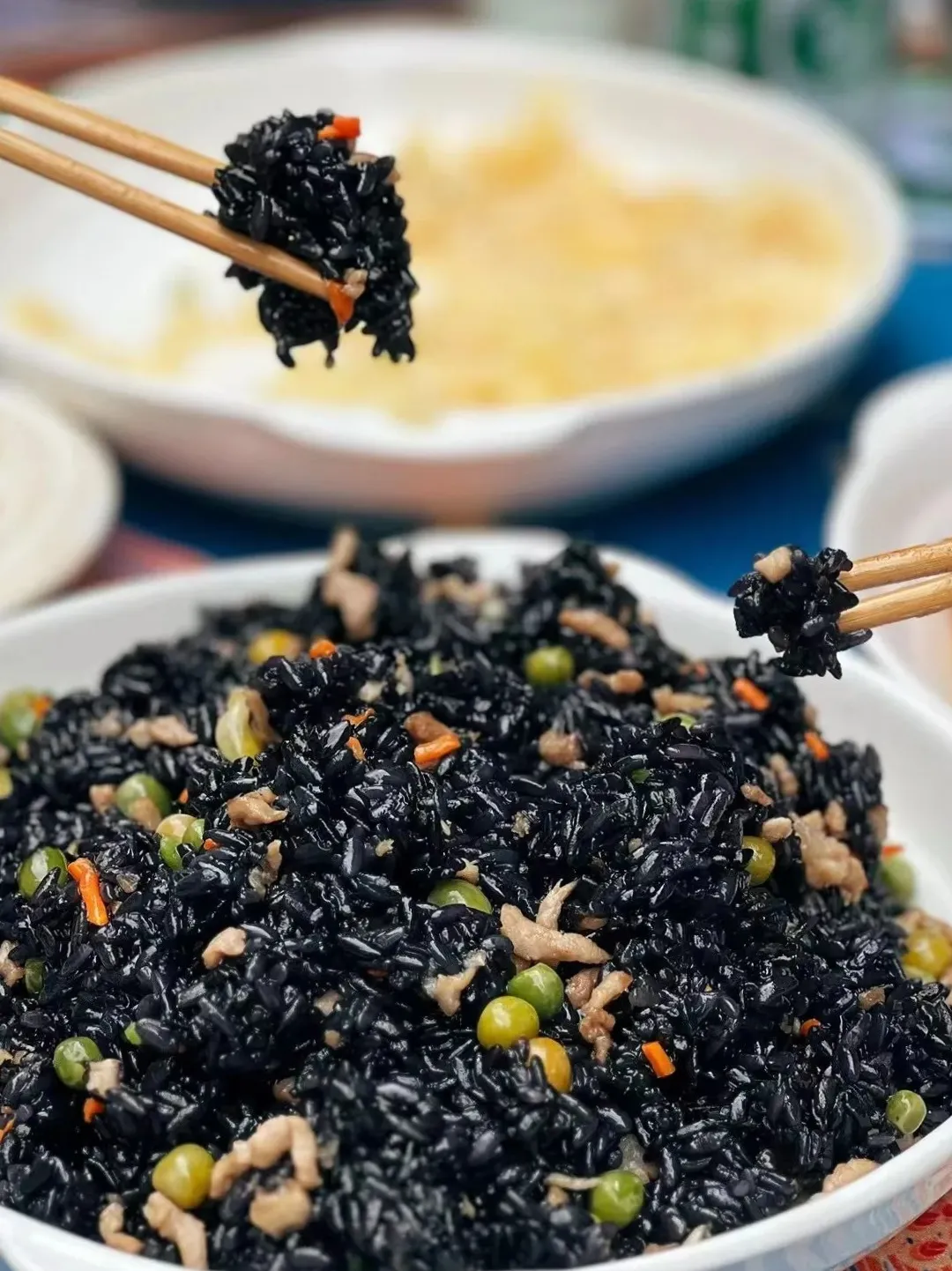 踏入畲乡,各色菜品香飘四溢,每一口都是历史的味道,带你穿越至畲族的传统盛宴。宴席上,乌米饭必不可少,用乌饭树叶染制得黑亮油润,香糯中带着草木清香,寓意日子蒸蒸日上。