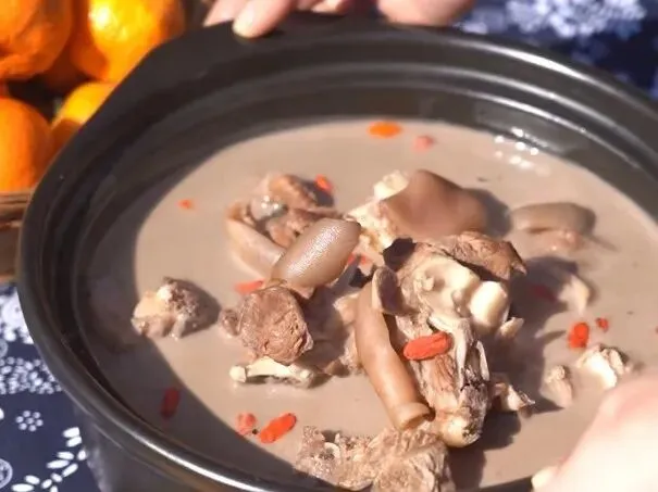 慢火煨煮的羊肉搭配草本药膳,肉质酥烂入味,温补鲜香,是畲乡冬日里的暖心美味。