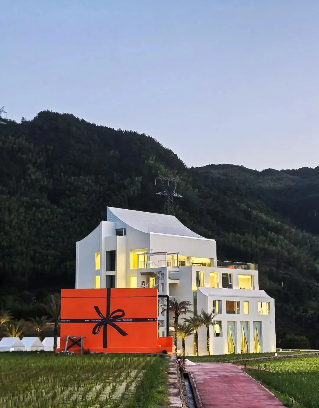 月宴・稻田餐厅紧邻月蓝舍畲族风格民宿,兼具自然野趣与艺术氛围。餐厅以白色建筑为主,搭配中式庭院(木质门窗、绿植点缀)与部分欧式元素(花园秋千等),ins风与畲族风情交融,景致出片且治愈,是周末逃离城市、拍照放空的好去处。其功能多样,设有宴会包厢,适配家庭聚餐、朋友小聚、生日宴请及商务接待等不同场景,可让食客在山野间享受美食与松弛时光。