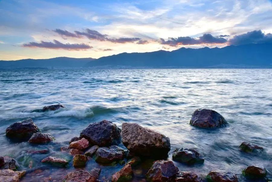 洱海,古称昆明池、洱河、叶榆泽等。因其状似人耳,故名洱海,位于云南省大理白族自治州大理市。一般湖水面积约246平方千米(一说251平方公里),蓄水量约29.5亿立方米,呈狭长形,北起洱源县南端,南止大理市下关,南北长40公里,是仅次于滇池的云南第二大湖,中国淡水湖中居第7位。洱海形成于冰河时代末期,其成因主要是沉降侵蚀,属高原构造断陷湖泊,海拔1972米。