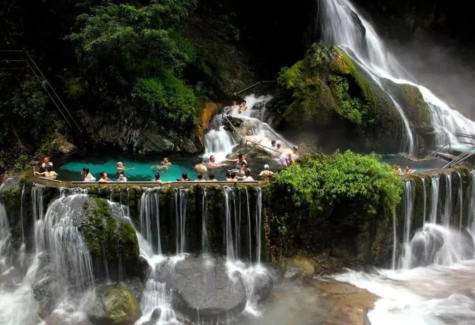有一个瀑布,被世界纪录协会认定为世界最大温泉瀑布、世界唯一温泉群岛、世界唯一悬崖温泉、世界最美温泉瀑布。那就是九十九里温泉瀑布。