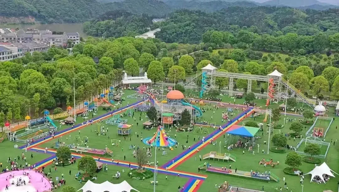 春节遛娃首选盘石洲森林花园!投资近10亿打造的生态乐园,拥有48项无动力游乐设施,含17米天空步道、80米彩虹滑道、30人网红秋千等,日本黑松、红枫等上千种名贵树种环绕,亲子协作体验“坑爹过山车”“飞跃黄河”,欢声笑语中感受自然与童趣。