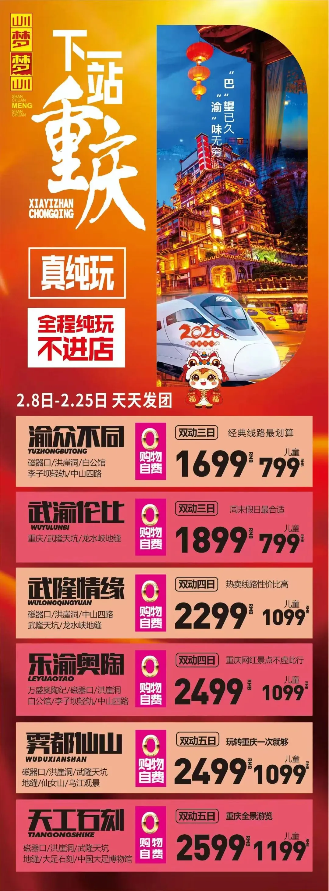 商运鹤城旅游:春节多日游游路线推荐推荐路线一: 纯玩 成 都