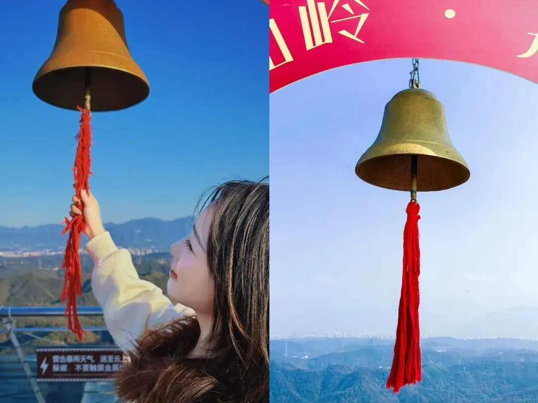 观景平台悬挂福运铃,轻摇铃铛,“三生万物、福运连连” 的美好祈愿随山风回荡,俯瞰郴城全景更添雅致。