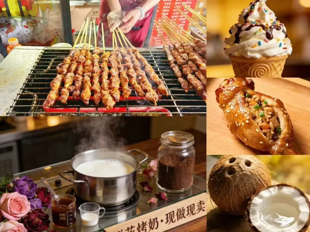 山顶广场、文创商街美食市集,每日09:00-21:00火热开档,郴州本土风味与各地特色小吃齐聚,让舌尖沾满福气,等你来解锁舌尖上的郴州年味!