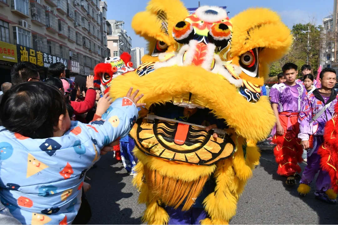 📍四会吾悦广场上演醒狮闹新春非遗表演,点睛采青、高空跳跃等经典环节氛围感拉满,搭配写春联、剪窗花民俗互动与黄金发财树打卡,传递马年“马上发财”吉祥寓意;
