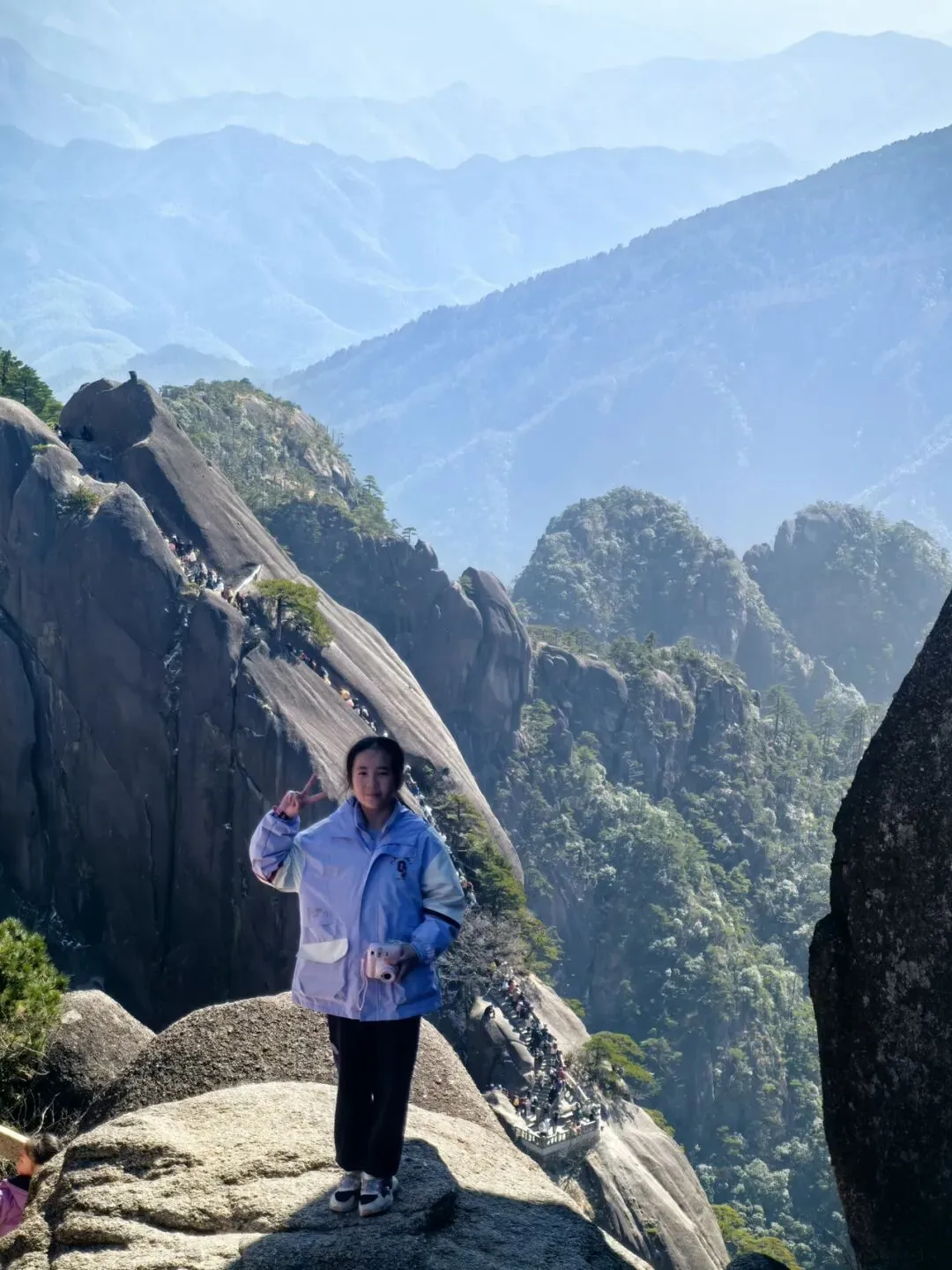 就在我们被黄山的人流裹挟着往前挪动时,身旁一个七八岁的男孩拽着妈妈的衣角问:“黄山就是排队吗?”
