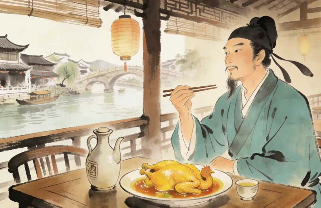 如今,淮安淮阴的运河风光依旧旖旎,酒焖黄鸡成了当地的特色文旅美食,游客们循着诗句而来,赏运河美景、尝诗仙同款黄鸡,感受这份跨越千年的温情。