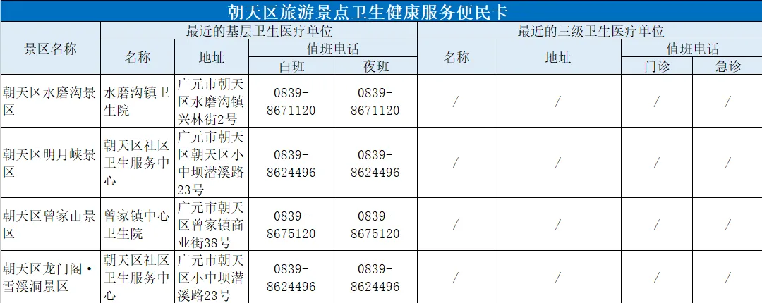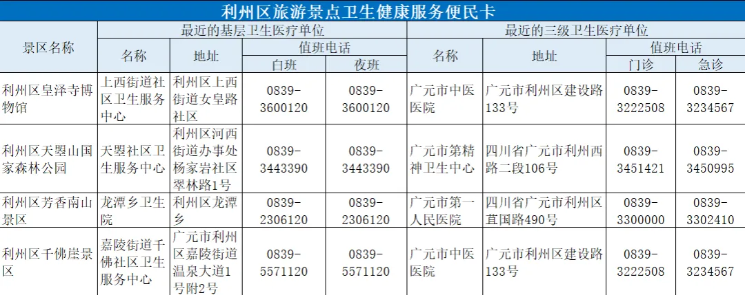 春节出行提示!广元市旅游景点卫生健康服务便民卡来啦