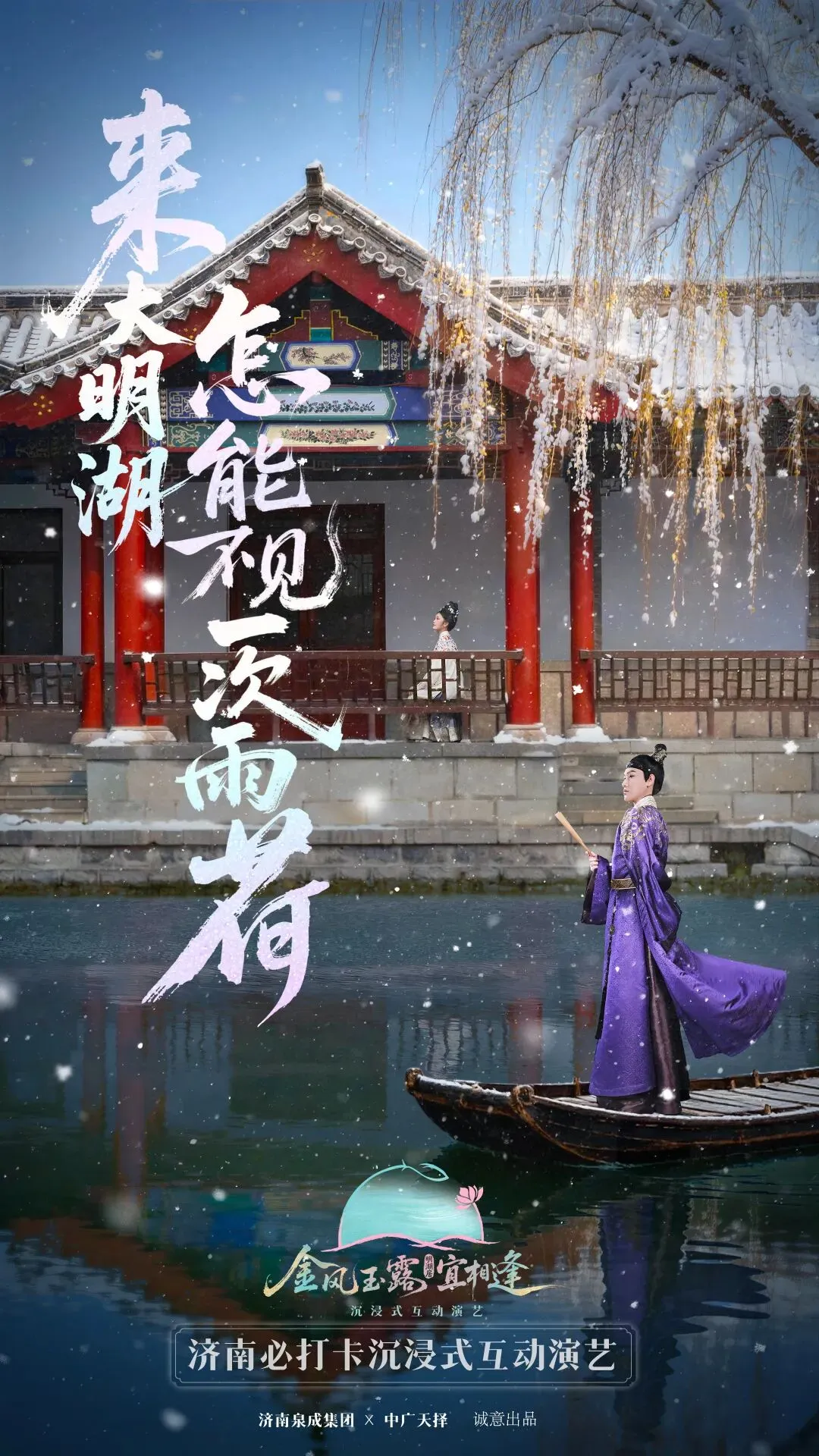 除了民俗盛宴,更有文化演艺大餐惊艳亮相。大明湖畔明湖居倾力打造的沉浸式爱情互动实景演出《金风玉露宜相逢》即将于春节期间惊艳亮相,以一场融合情感哲学、齐鲁风雅与深度互动的文化盛宴,为市民游客解锁泉水湖畔的演艺新体验。