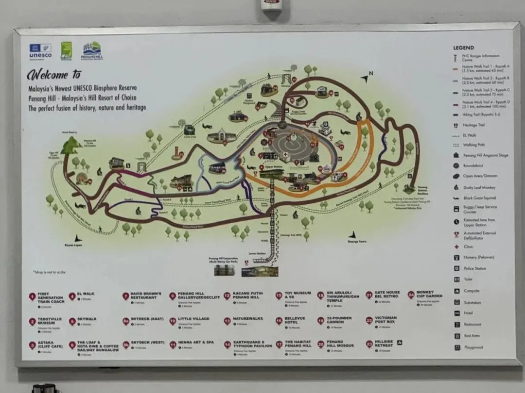 绝对是槟城标志性景点之一,会爬山的人也可以选择徒步或搭缆车上去。风景是真的可以一览槟城全岛,不过人很多、排队也不少。