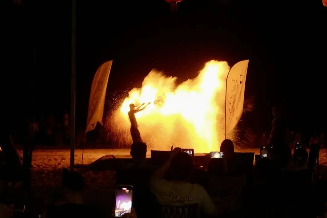 🕐 海滩全天开放,表演时间随档口安排