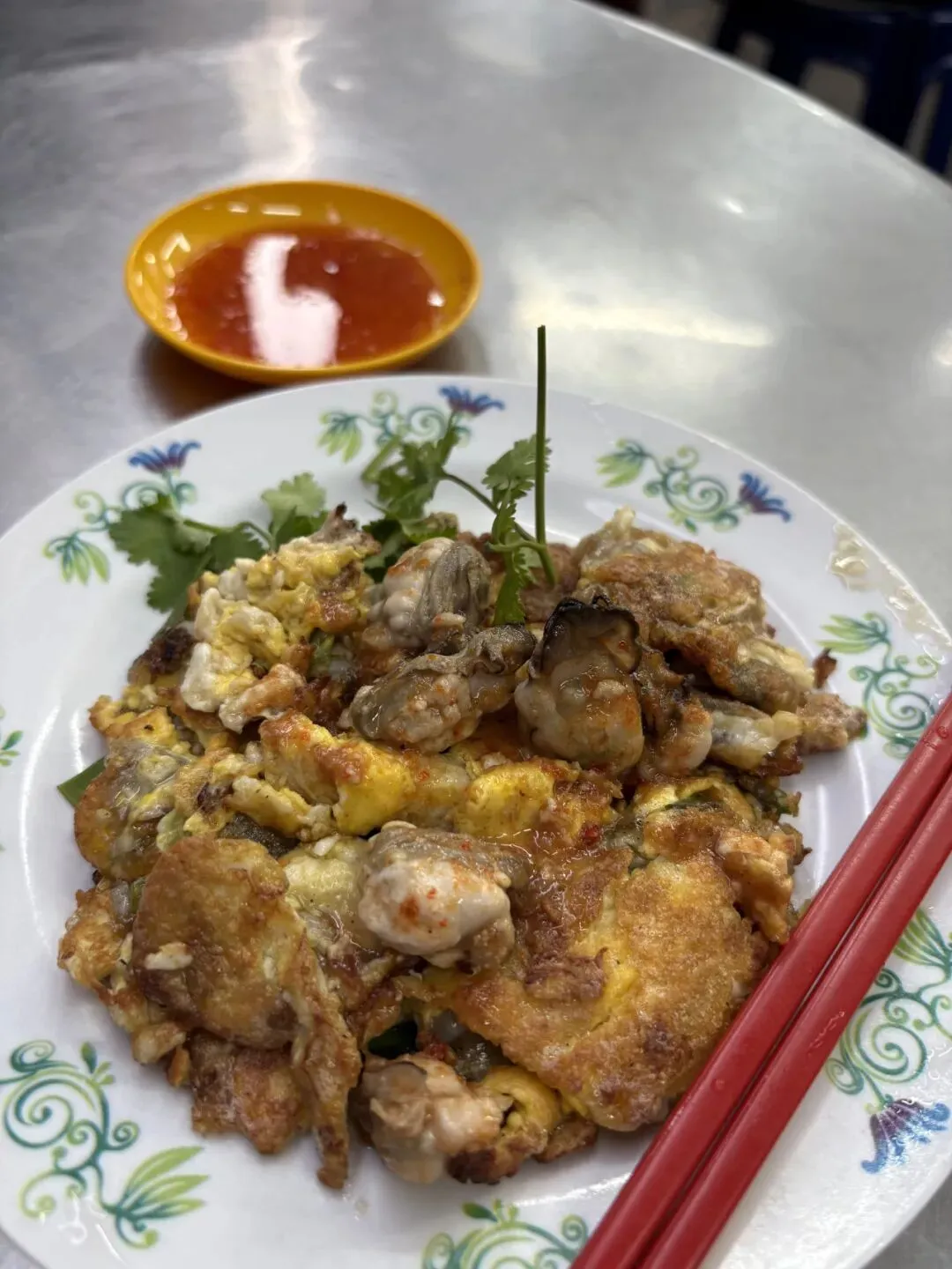 夜市版的蚝煎咸香弹牙,配上辣酱很过瘾。