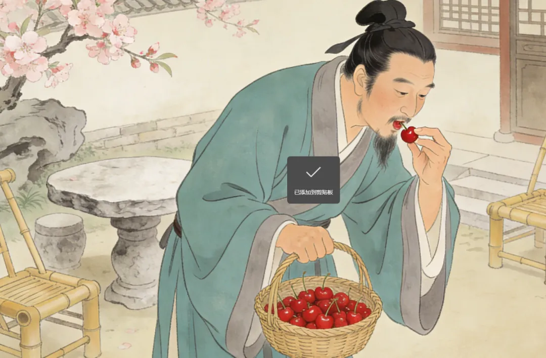 当地百姓送他新鲜樱桃,他又提笔“西蜀樱桃也自红,野人相赠满筠笼”,感念这份温情与樱桃的鲜甜。