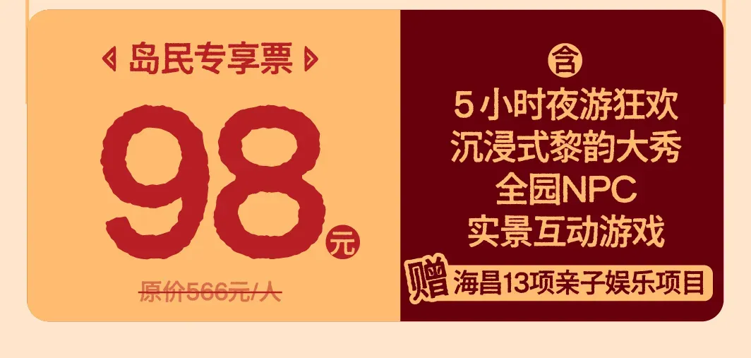 免责声明:本项目推广名为看见三亚沉浸式夜游部落。本宣传资料所发布时间为2026年2月,后期存在调整可能,恕不另行通知;本宣传资料部分素材为AI生成,仅供参考。“亿万富翁游戏”只是游戏名称,银票为虚拟游戏币,不具有现实意义。“今夜成角儿”只是互动名称,所赚“片酬”为游戏银票,不具有现实意义。在法律允许的范围内,本资料解释权归看见三亚沉浸式夜游部落所有。
