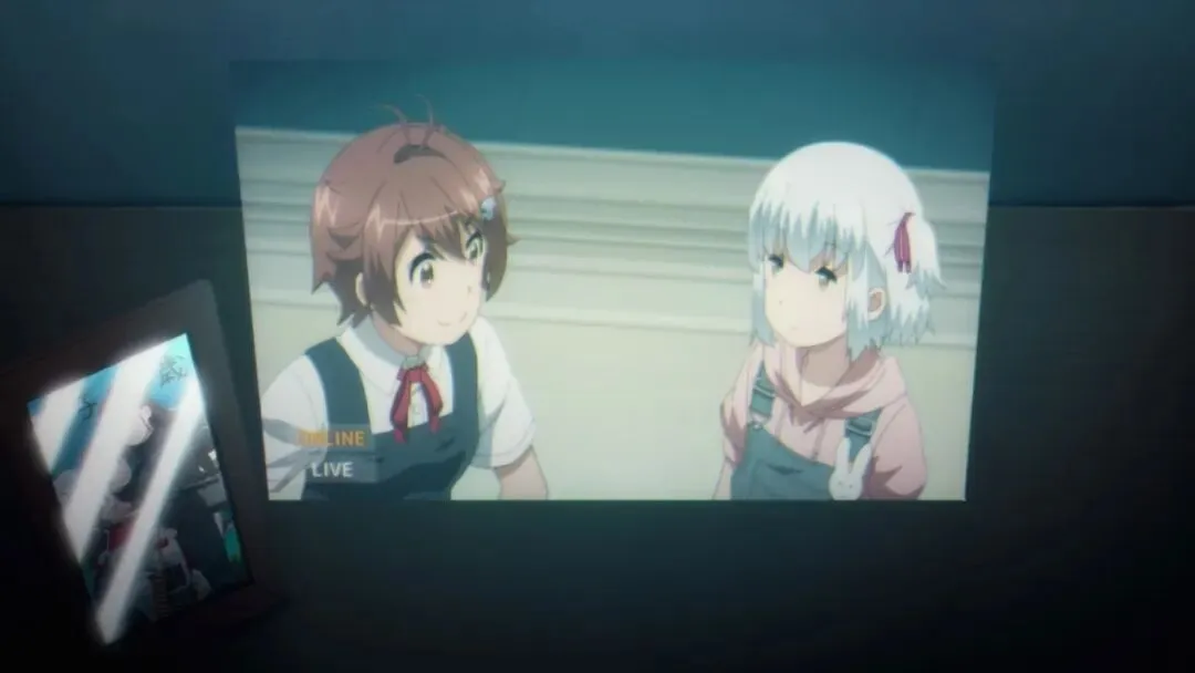 幻想题材作品里发动魔法才可能出现的景象 以上是相对比较现实的部分,动画中还有更科幻的展现,比如第9集中洋子在茂木的赛道上飞驰的时候看到了那些废弃多年的赛车以及展览馆里早已报废的机器人员工的“机魂”;第10集中两人即将被落石砸中时晴天霹雳击碎了岩石;在11集中更是出现了外星人,外星人说吉见百穴是当年造访地球时和古代人类一同建设的,原以为几百年后人类足以掌握与它们交流的技术,然而再次降临时,地球已是末日废土。动画极大扩充了见到外星人之后洋子一边骑着225爬上山坡一边串起日本历史的桥段,甚至还直接展示了被原子弹的蘑菇云,从我之前看的日本综艺节目只是口误用了“被爆”这个词就要在下一期正儿八经放个道歉公告来看,这个还是比较勇的。 关于洋子和爱莉离开的“避难所”,虽然第2集就略有展示,但直到最后一集才大篇幅描述其中的生活。“姐姐”是洋子和爱莉在避难所里的老师,通过屏幕与她们交流、教授各方面知识,洋子的旅行路线就是“姐姐”在末日之前在某个明显是neta了ins的社交软件上打卡拍照的旅游路线。两人离开避难所表面上是已学习了足够的生存知识,实际上是避难所损耗严重,难以继续支持两人长期生活,在把她们送到外面的世界之后,避难所也悄悄停止了运行,但“姐姐”还会在旅途中给她们发送消息、更新数据。
