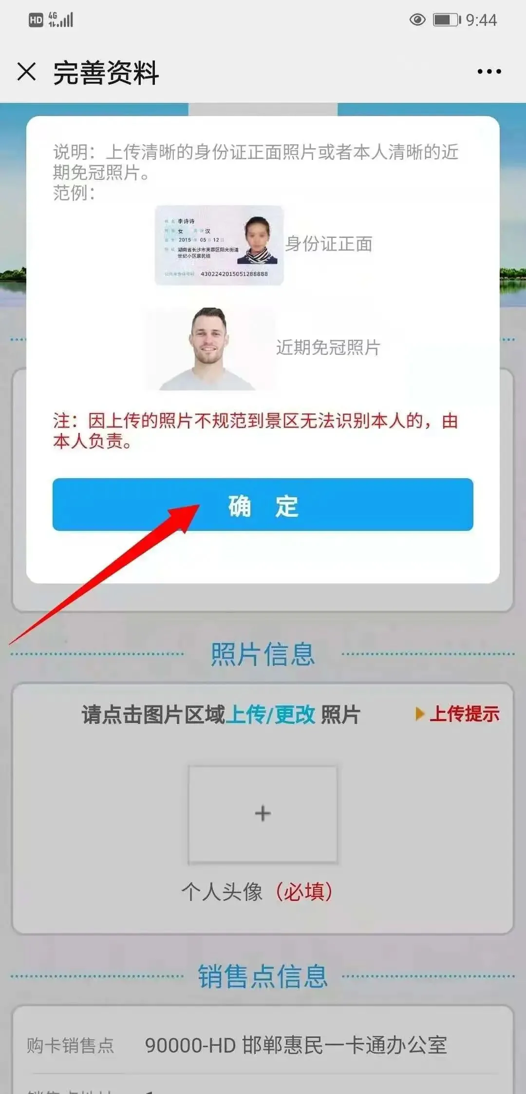 01.上传照片提示:点击“确定”后,在相册里选择照片或者拍照;
