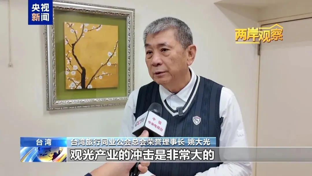 台湾旅行同业公会总会荣誉理事长姚大光在接受《两岸观察》记者采访时表示,陆客来少了,甚至现在团体都不能过来,对我们台湾观光产业的冲击是非常大的。台南、高雄、屏东、台东、花莲,这些台湾中南部、东部的县市,以前几乎都是靠大陆观光客,所以现在我们很多游览车都停摆,饭店很多是空的,甚至在歇业当中。