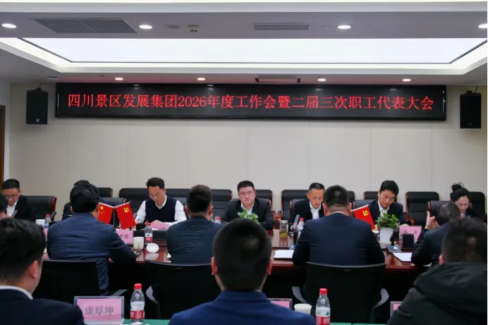 2月12日,四川景区发展集团召开2026年度工作会暨二届三次职工代表大会,认真贯彻落实省旅投集团2026年度工作会精神,全面复盘2025年“运营质效提升年”工作成效,明确2026年“运营质效突破年”及“十五五”开局之年的核心工作方向与重点任务,动员全体干部职工凝心聚力、真抓实干,奋力开创集团高质量发展新局面,努力为省旅投集团高质量发展贡献力量。
