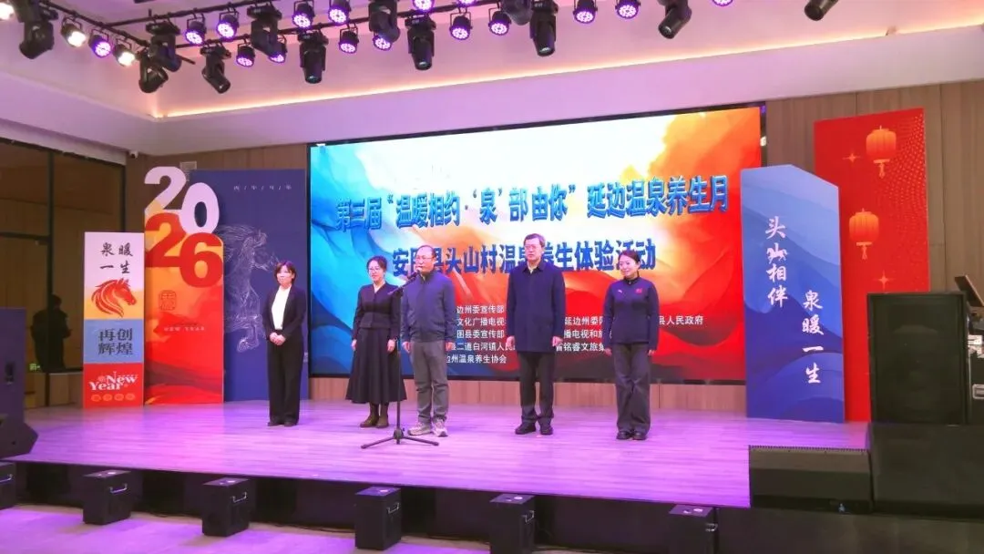 2月12日,第三届“温暖相约·‘泉’部由你”延边温泉养生月——安图县头山村温泉养生体验活动正式启动。州政府副秘书长梅洋,县委副书记、县政府县长郑哲,州文广旅局局长刘冬梅,县政府副县长金贞娟,长白山管委会旅游和文化体育局副局长李雨欣出席活动。