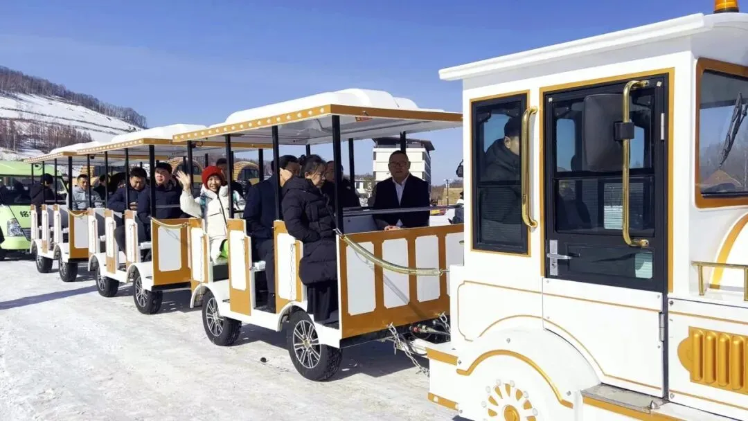 启动仪式后,与会嘉宾开启泉雪寻参・一路同行沉浸式游园打卡。从特色市集到室外温泉,从冰雪乐园到人参馆,全程通过观光车、雪国列车,一站式感受年俗市集、冰泉胜景、冰雪乐趣与人参文化底蕴。