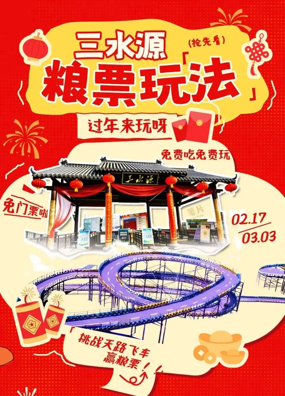 关键词:粮票玩法、天路飞车、童年游戏、时光邮局、趣味互动、新年祈福 优惠:2月17日至3月3日免首道门票,¥399吃喝玩乐住一价全含