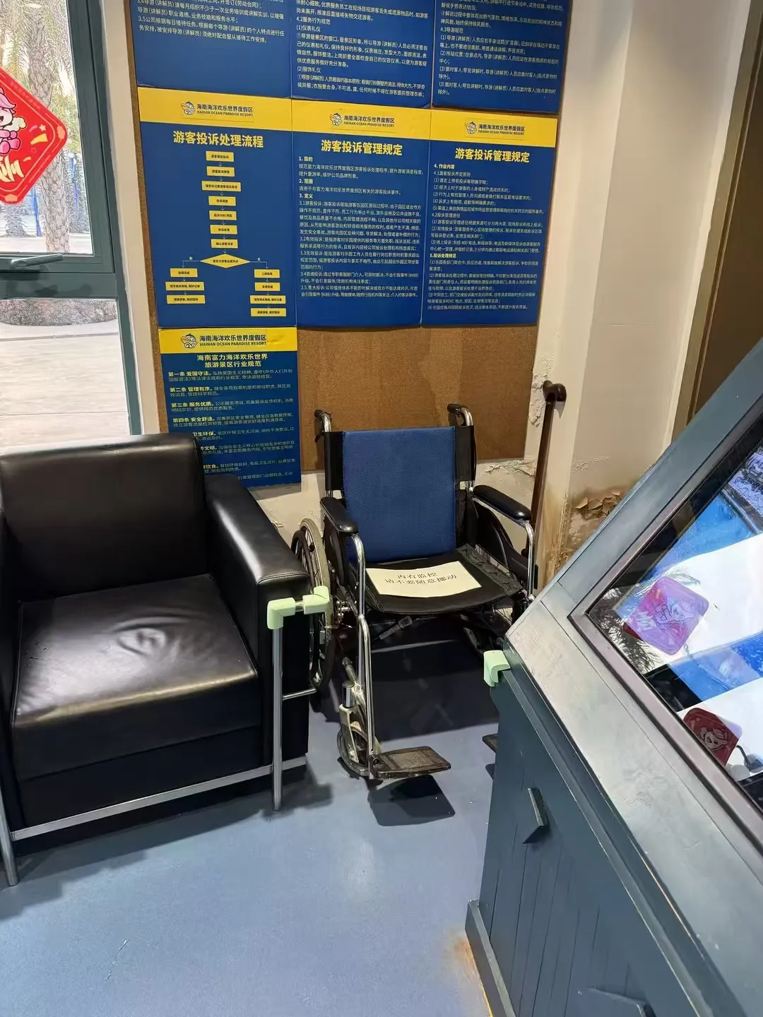 当下,海南正值旅游旺季,旅游市场一片火热。海南海洋欢乐世界作为备受游客青睐的热门景区,游客接待量持续攀升。为给游客带来更优质的游玩体验,景区精心打造“暖心服务站”,成为传递海南春节温暖与好客之情的“温馨窗口”。在这里,游客能免费享用到热水热茶,驱散旅途的疲惫;应急药品一应俱全,创可贴、晕车药、常用感冒药等随时可供取用,为游客的健康保驾护航;停车场入口设有咨询服务点,工作人员热情解答游客疑问,指引游玩方向;游客中心也贴心提供免费温水服务,让温暖从舌尖蔓延至心间。