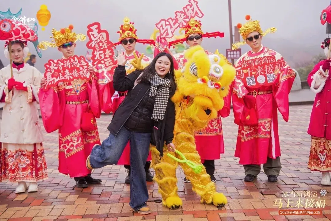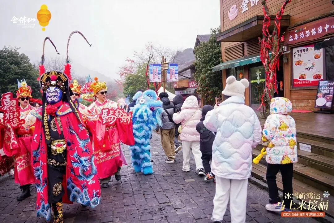 大年初三至大年初六,金佛山景区创新打造“《鸿运金佛·马上接福》行进式国风互动大秀”,财神巡游、非遗表演、鱼灯仙子舞蹈、祥狮NPC情景互动……覆盖西坡索道上站广场、古佛洞集市和天星小镇,游客可边玩边祈福,沉浸式体验,在游览中感受浓浓年味。
