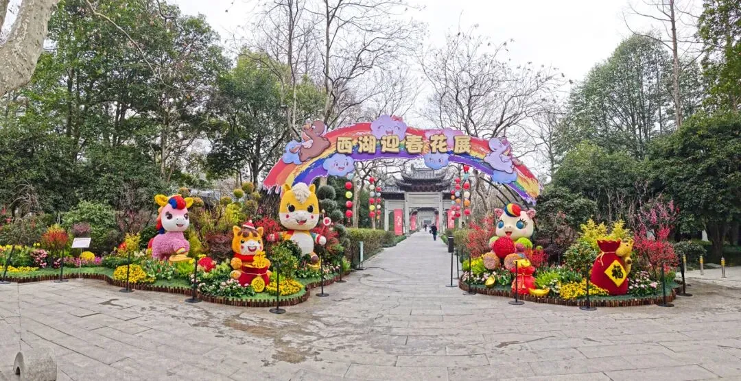 在马年新春之际,钱王祠以“陌上花开迎春归”为迎春花展品牌,以“一马当先万象新”为主题,设计新颖、精巧的室外园林小品, 加上喜庆丰富的环境布置,结合室内精品花卉展陈,室外广场融入商业业态及互动活动,全方位打造一场可赏、可玩、可吃、可买的多层次体验新春游园会。