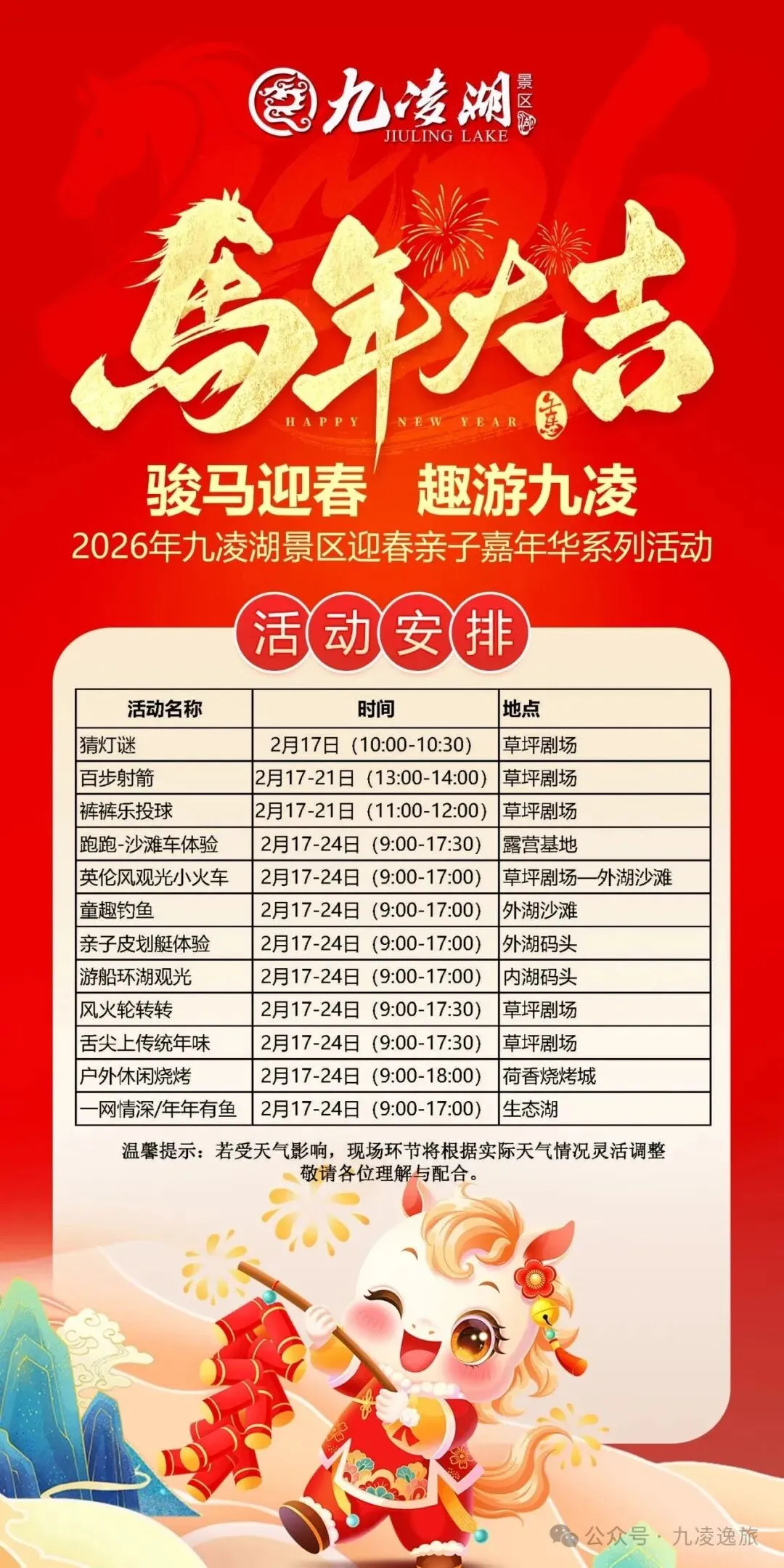 【骏马迎春 趣游九凌】2026九凌湖景区迎春嘉年华系列
