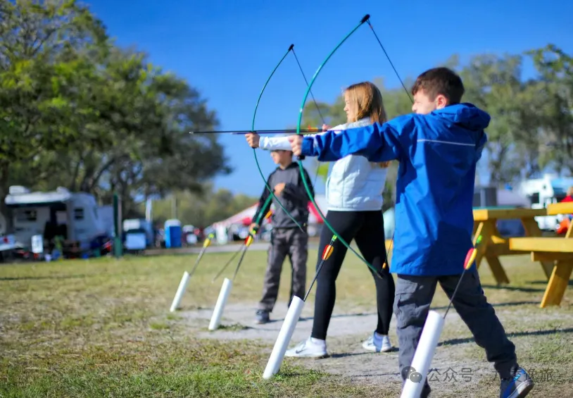 4、禁止拉空弓、对人瞄准、追逐打闹,儿童需家长全程陪同。