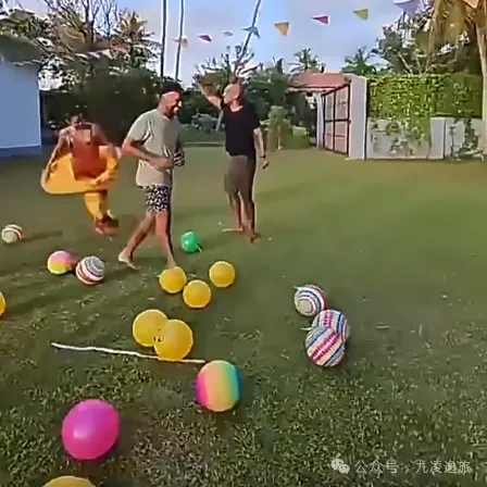 1、玩家站在指定投掷线外,每人可抢多个球。