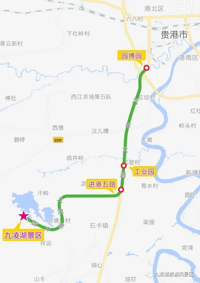 【九凌湖景区自驾路线示意图】