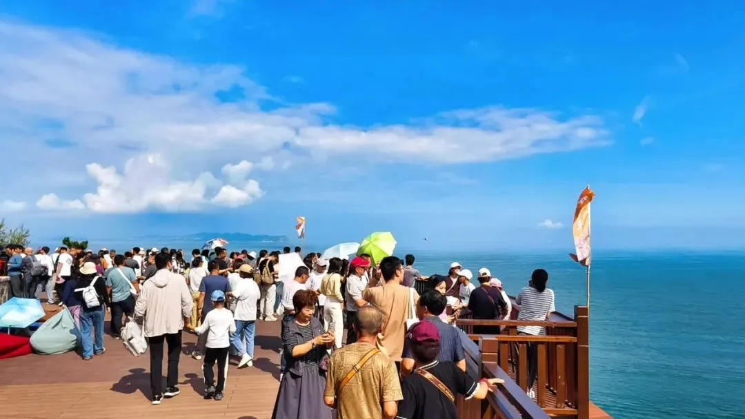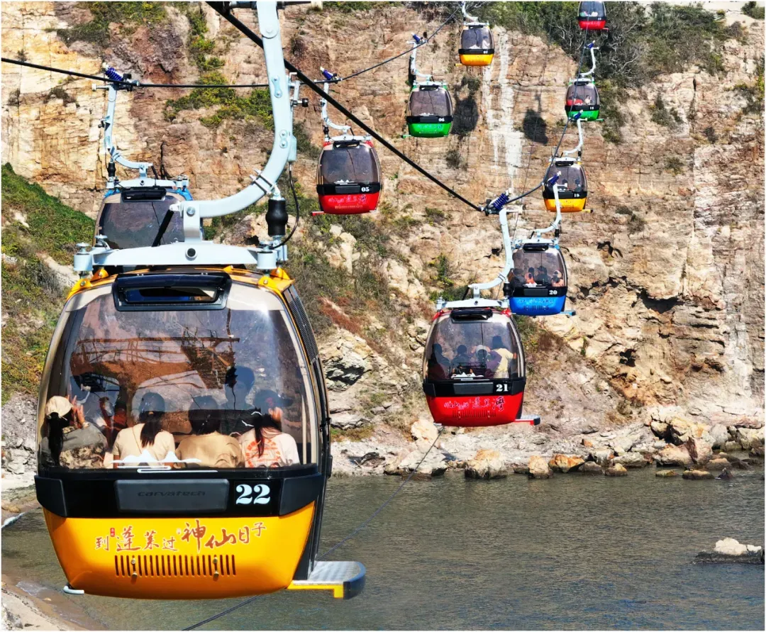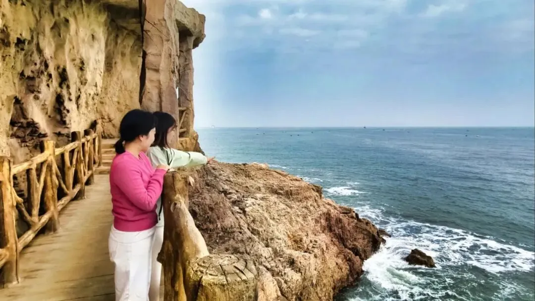 登顶老北山,远眺黄渤海分界奇观,漫步悬崖栈道、乘坐跨海索道,山海一色尽收眼底,尽览仙境壮阔风光。