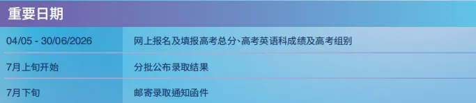 • 综合评估考生的高考总成绩及高考英语科成绩,择优录取,高考外语非英语者需参加英语面试。