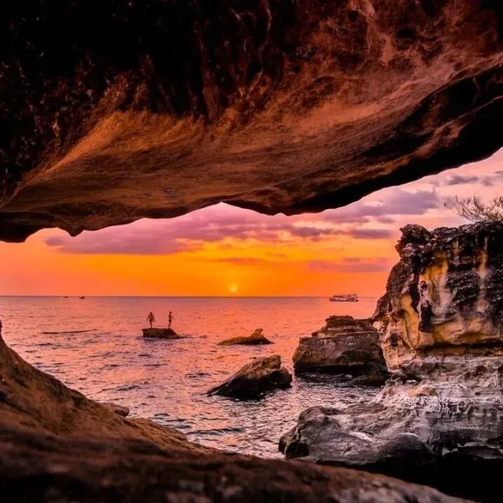 12月~次年4月退潮时大片红色海星裸露,清晨人少,海水透亮好拍。